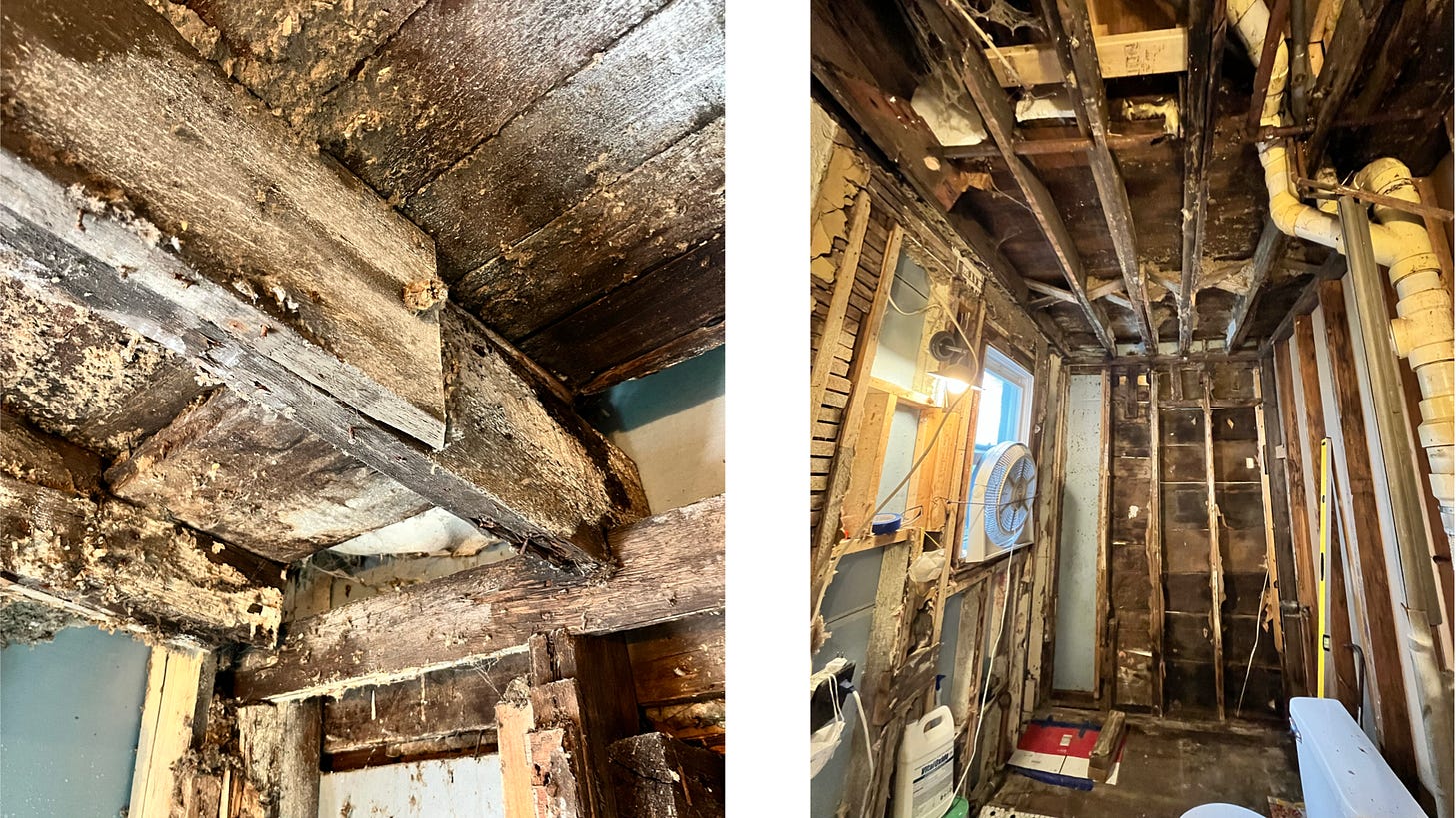 But I knew the answer. I wanted to stop and just close the whole thing back up. I wanted to shut the door and pretend it wasn’t happening. But could you even imagine this? Sealing up the walls knowing there was black mold and rotten framing? It would be terribly dangerous to me and the people I love most in this world.